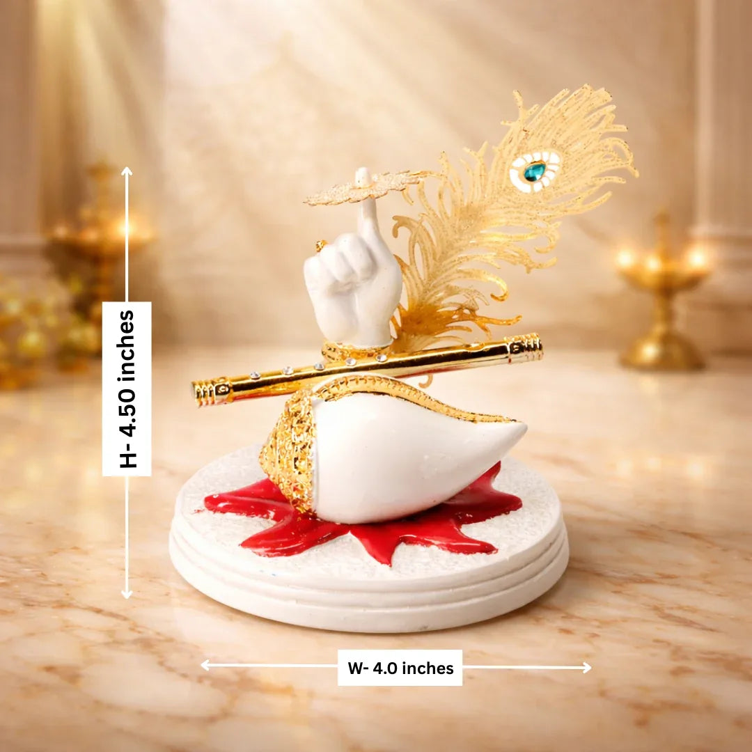 Made from durable metal alloy, the statue features a gold-tone finish paired with a rich brown decorative base accented with gold detailing, giving it a premium and refined look. The smooth polish and detailed workmanship highlight its handcrafted appeal. Measuring approximately 6 inches in height, it is perfectly sized for tabletops, shelves, office desks, or pooja room displays without occupying too much space.